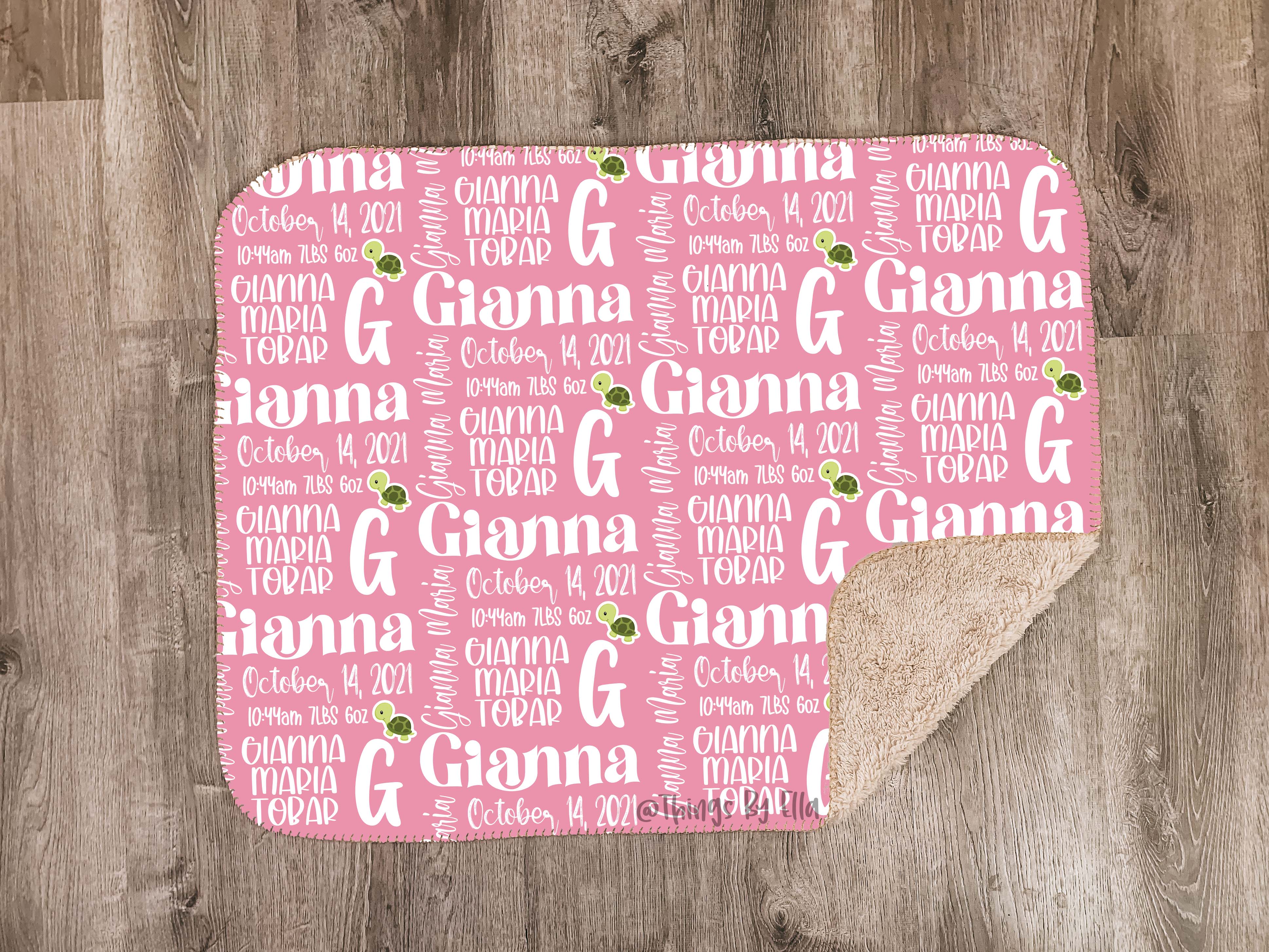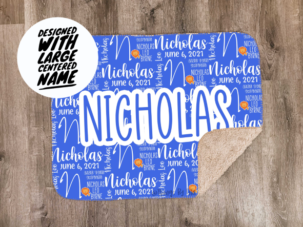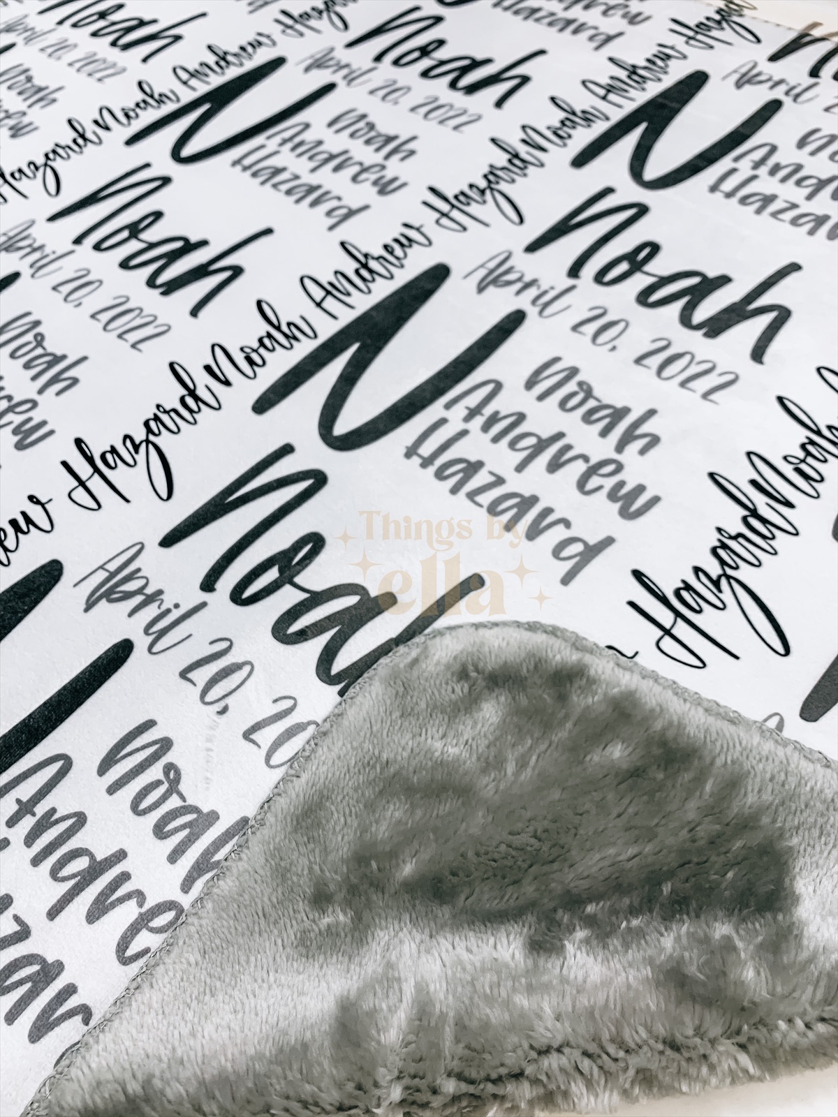 **Please leave all info you would like in your custom blanket including name/s, dates, birth stats, colors & specify if you want the design to include the large centered name or not in the notes section along with your email address. Please double check the spelling!