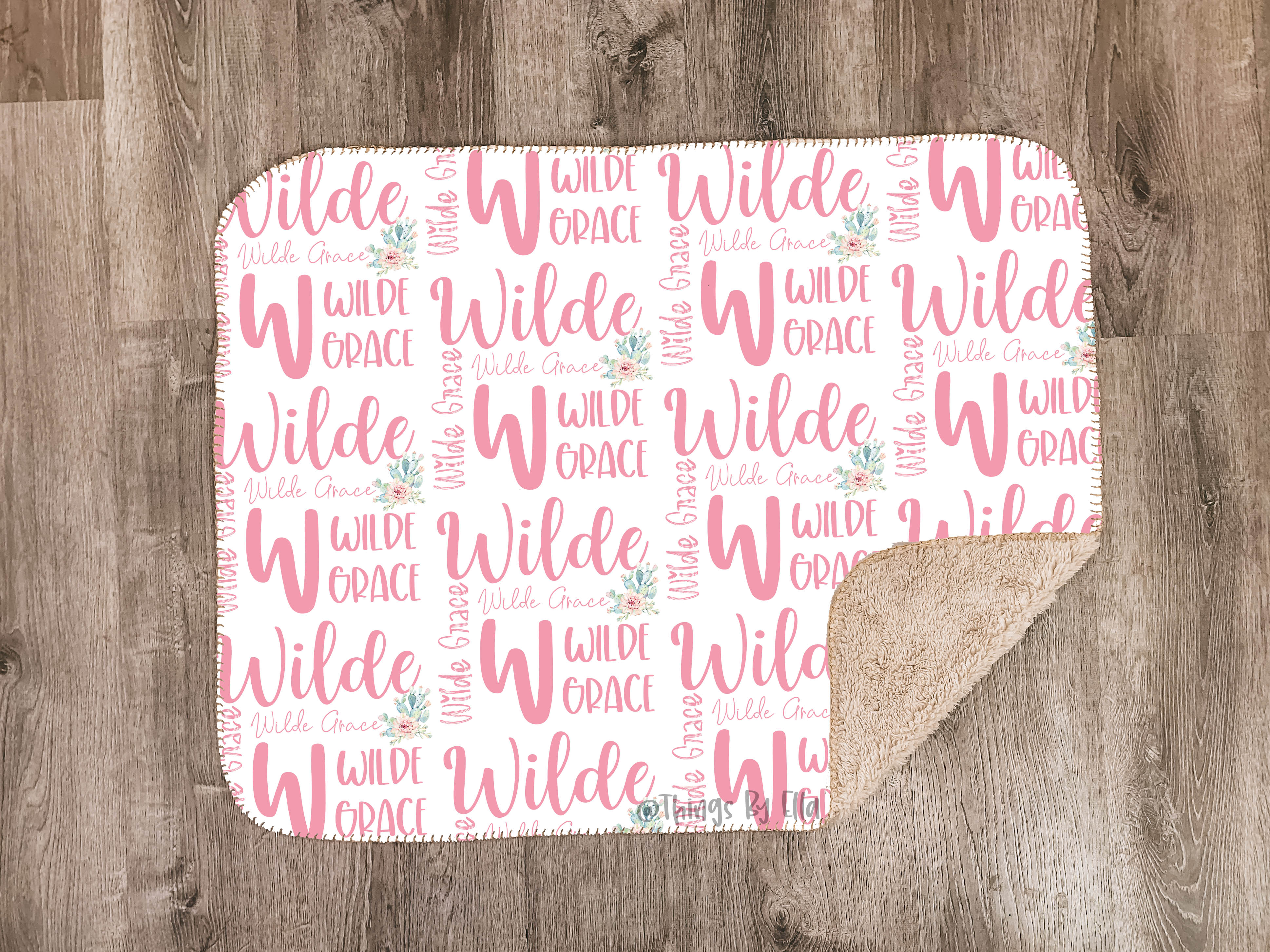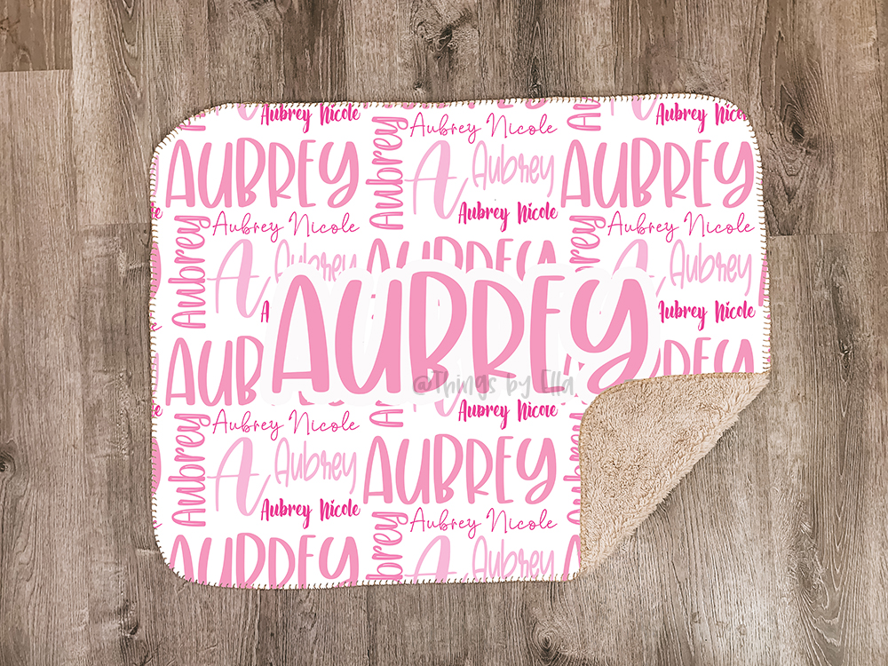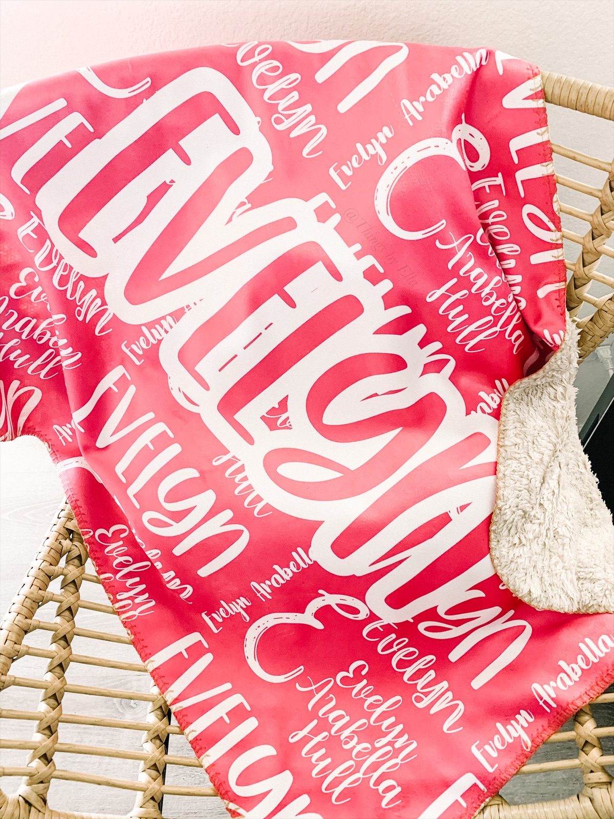 These custom name blankets are customizable with your name & color of choice and is printed on an ultra smooth micro-minky. The back is lined in a plush neutral colored sherpa and whip stitch finished. This blanket measures 30x40.