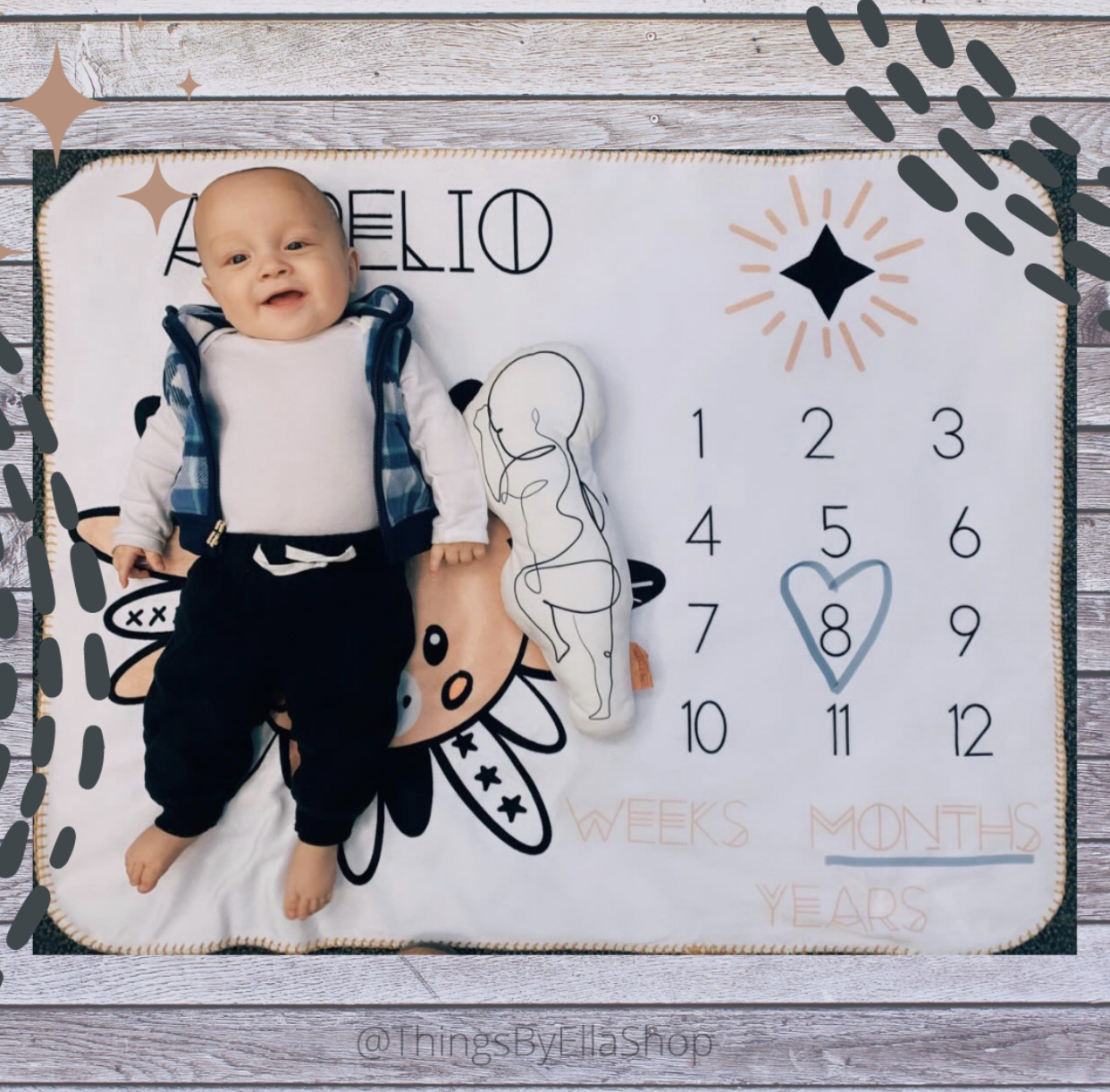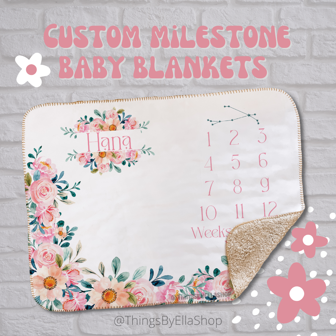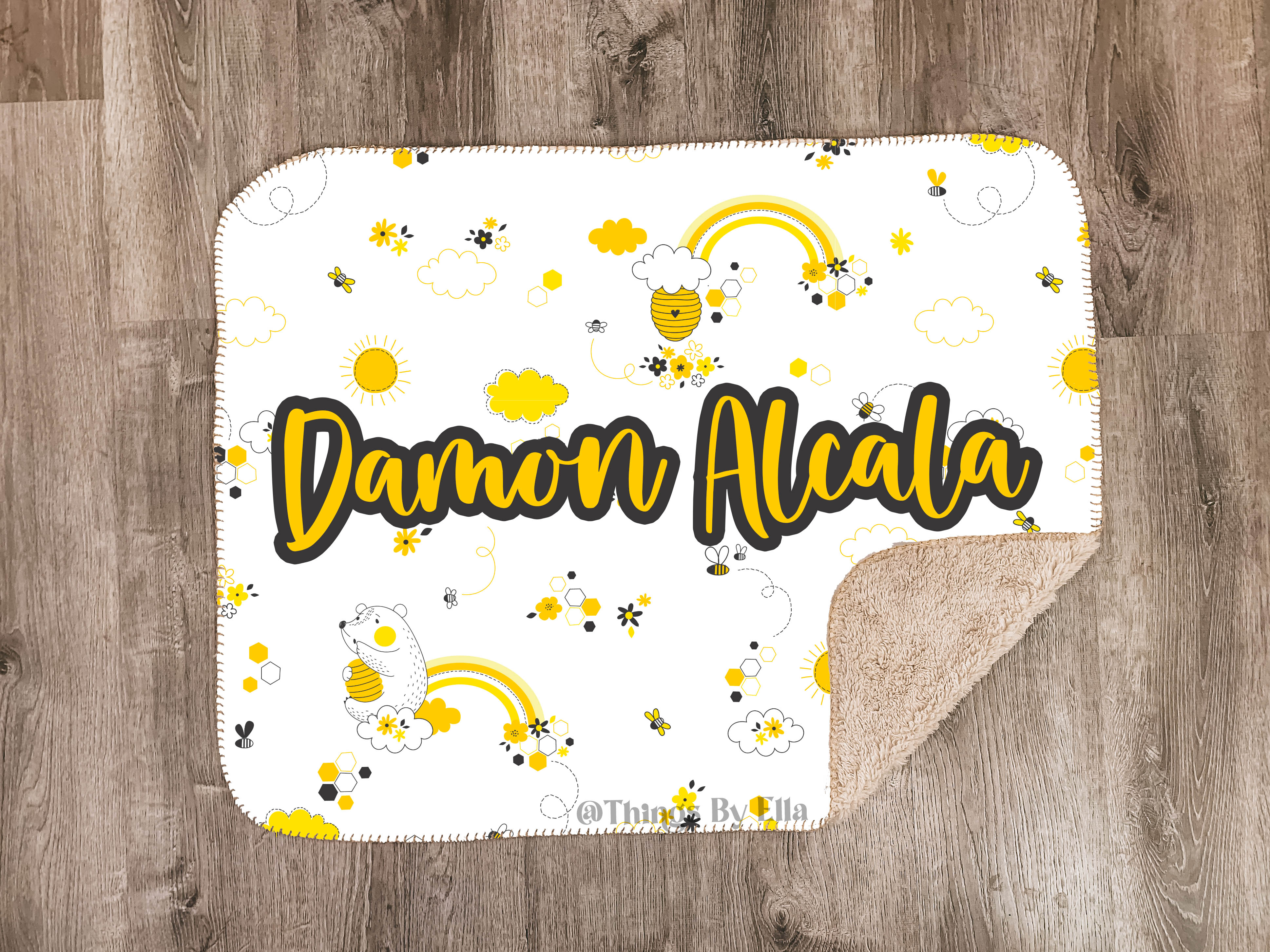 Customize your own baby blanket, request a theme, or send us your own design & your name of choice.These custom blankets are customizable with your name & color of choice and are printed on an ultra smooth micro-minky. The back is lined in a plush neutral colored sherpa or gray minky and whip stitch finished. This blanket measures 30x40.