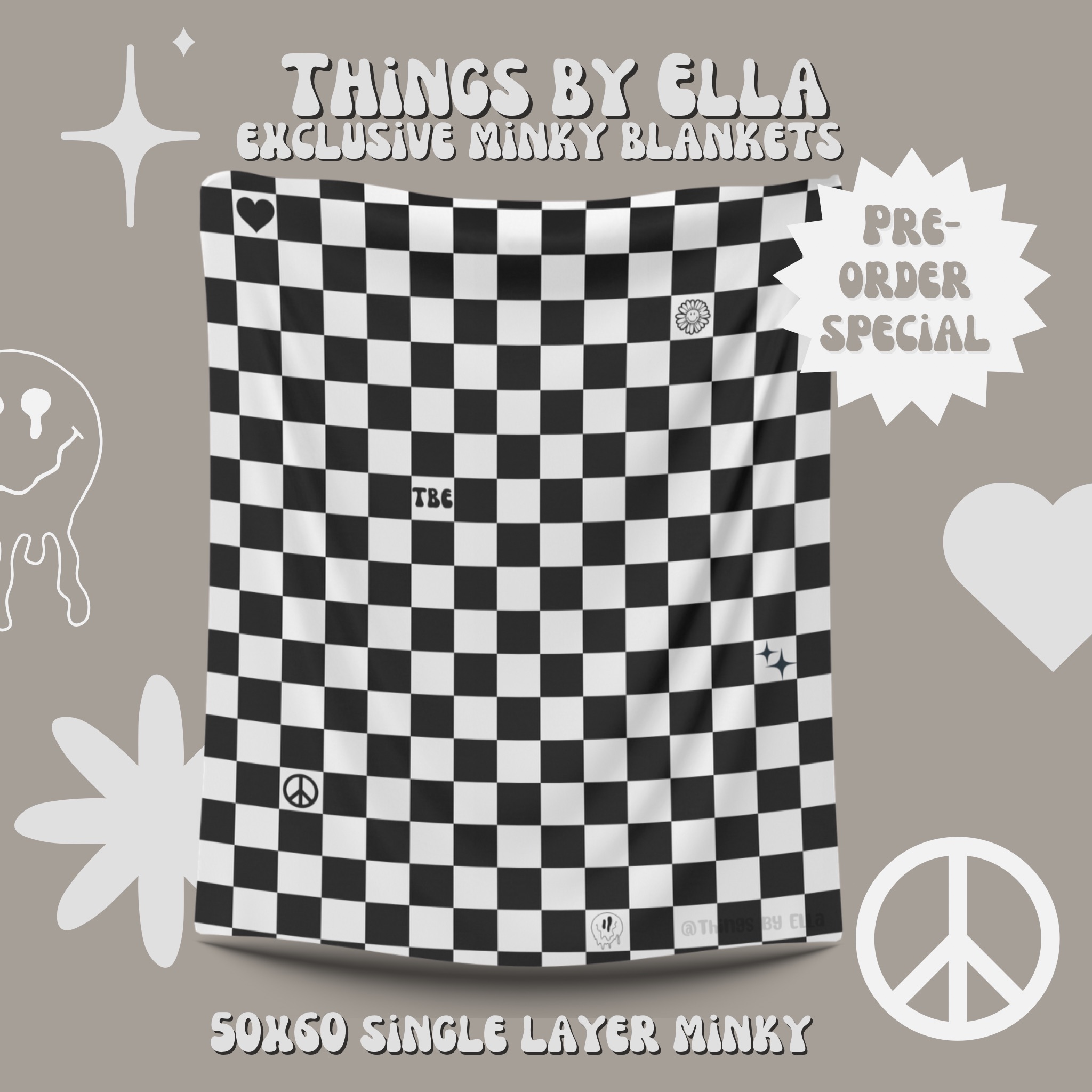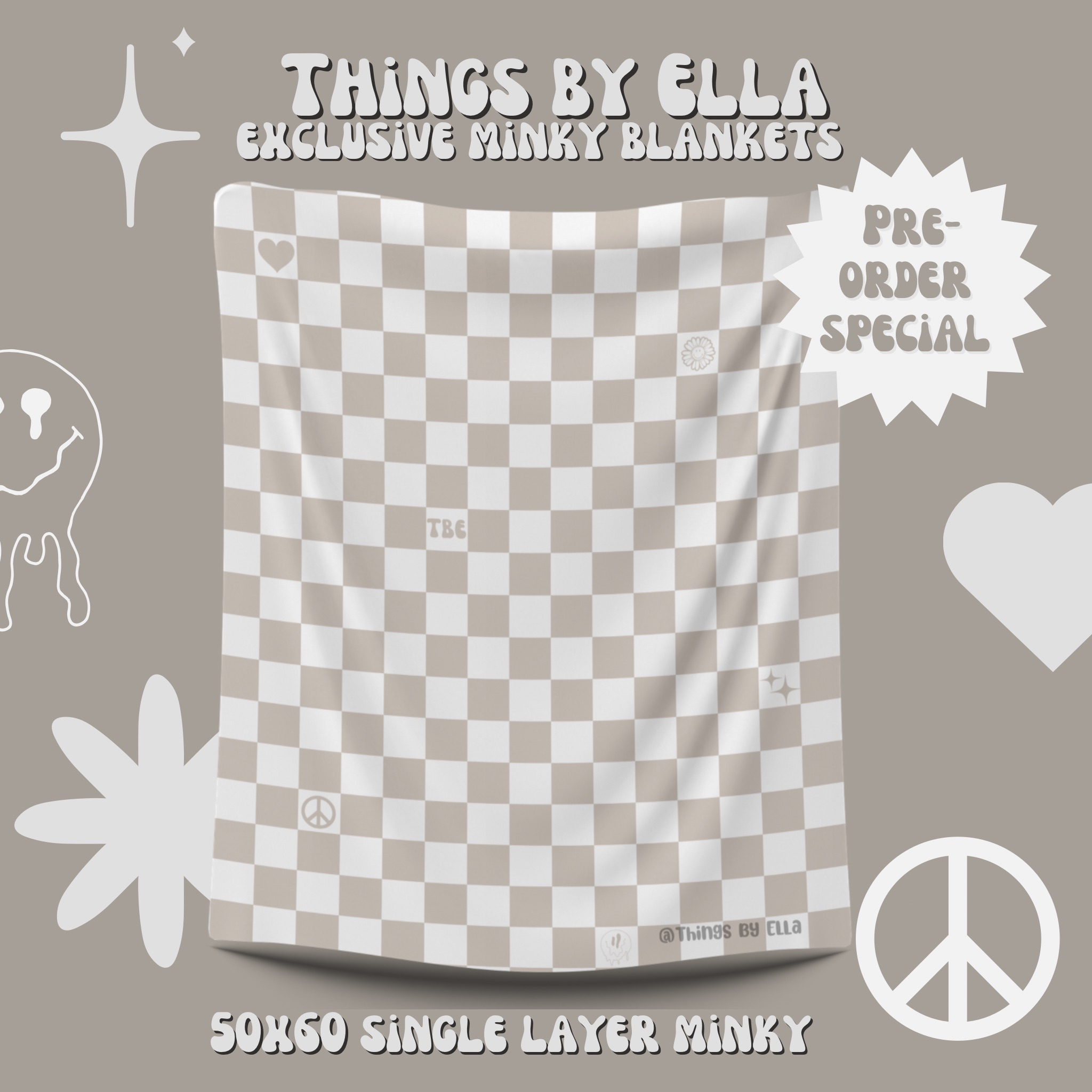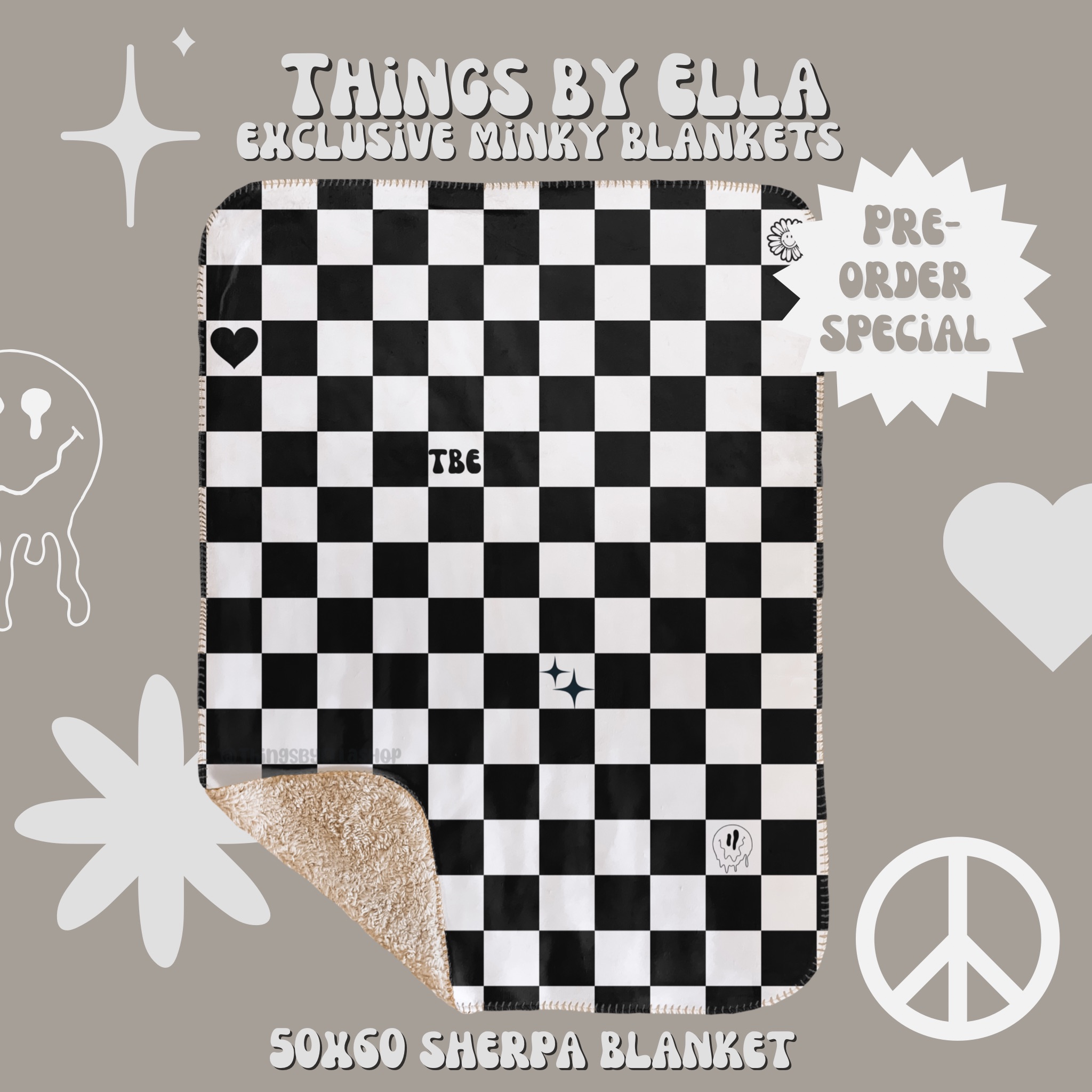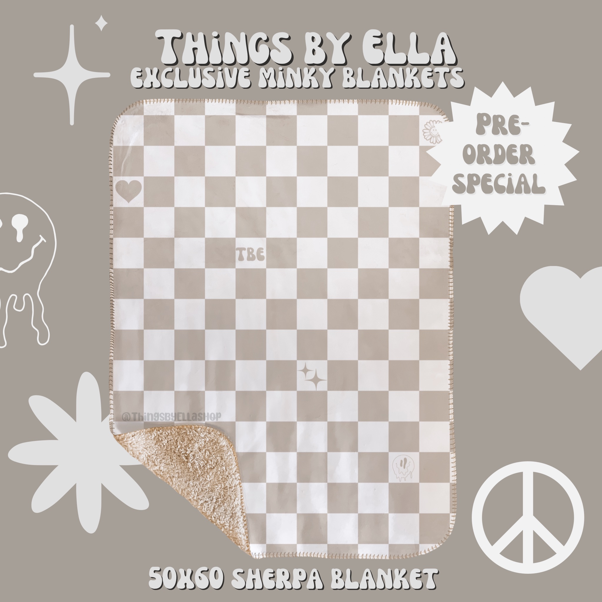 This EXCLUSIVE Things By Ella design comes in black or sand & is printed on an ultra smooth micro-minky. Your choice of blanket include single layer minky or plush tan sherpa backed blanket. This blanket measures 50x60.