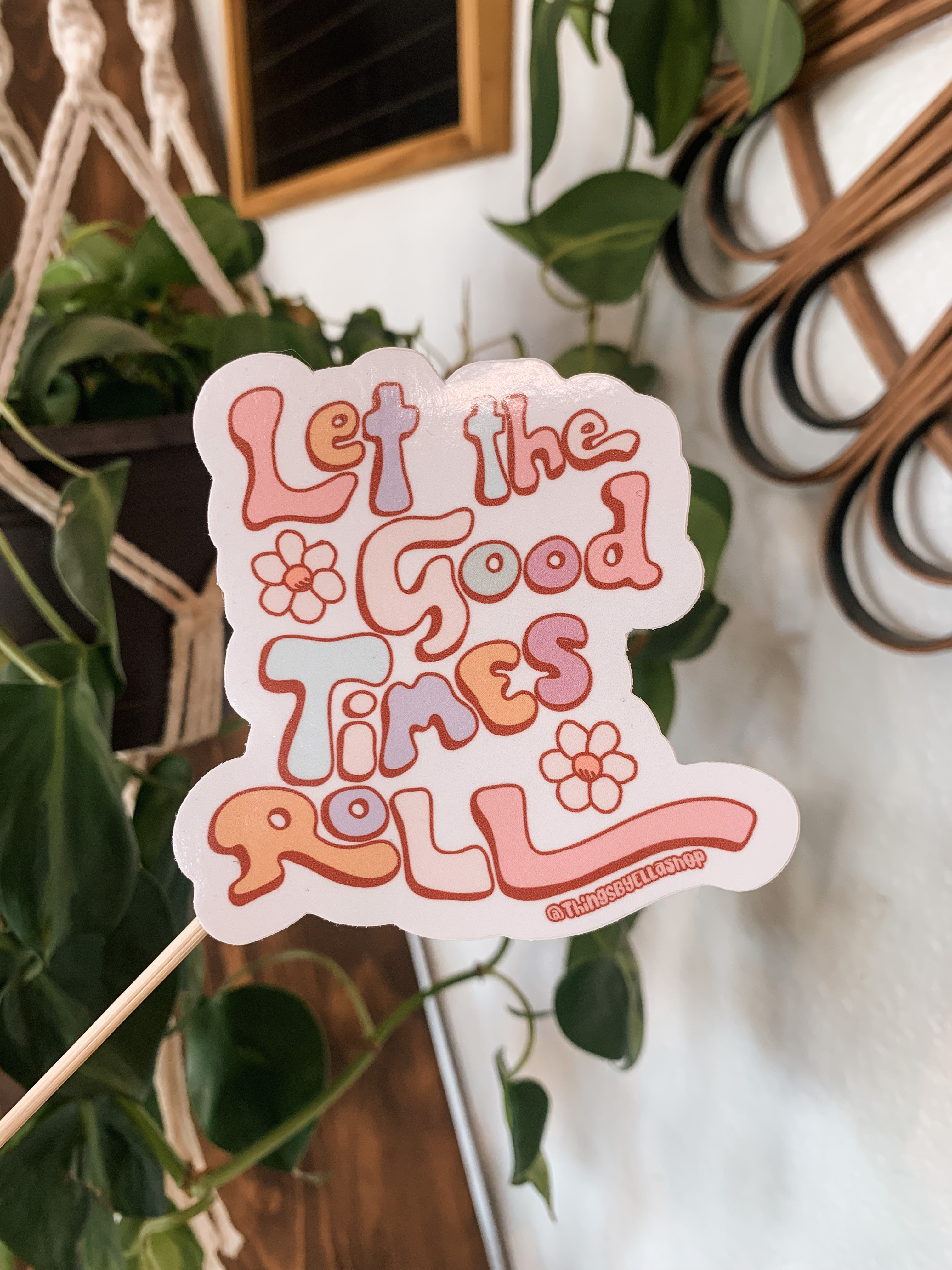 Let the good times roll sticker; measuring approx. 2.5 inches, weather & water resistant!