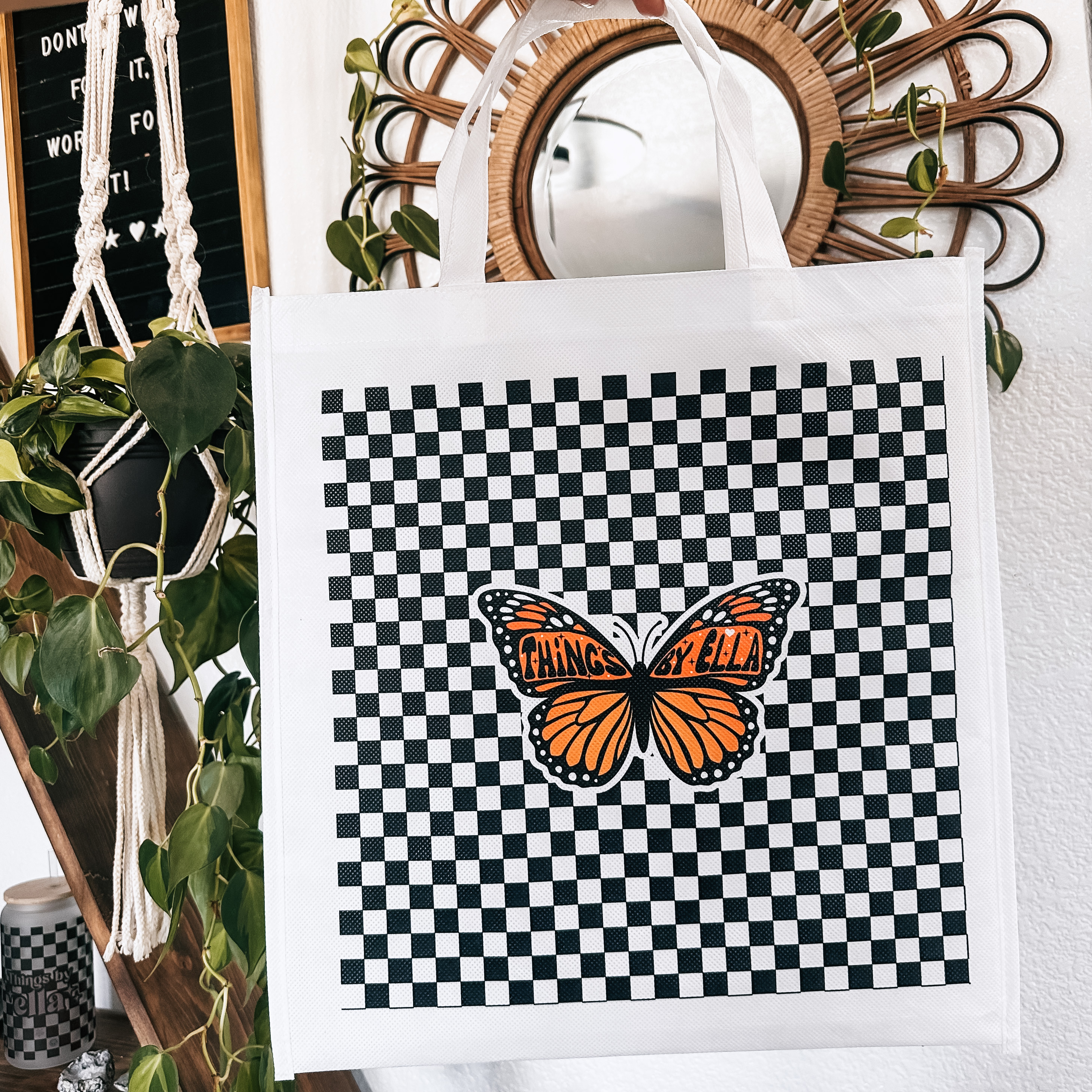 These bags are so great for reusable shopping bag replacements and also so fun to gift your Custom Things by Ella items in! Made of recycle material so they are not cotton canvas totes bags.